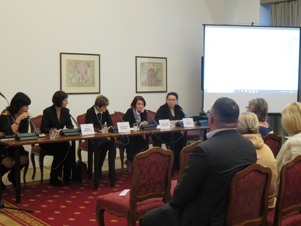 Za MPSV vystoupila Mgr. Martina Štěpánková Štýbrová, ředitelka Odboru rodinné politiky a ochrany práv dětí, která ve své prezentaci představila současný stav provozu dětských skupin a jejich budoucí ukotvení. Finanční zakotvení ve státním rozpočtu představila ředitelka Odboru rozpočtová politika společenský významných odvětví z Ministerstva financí Mgr. Marie Bílková. Za MŠMT vystoupila Mgr. Ivana Blažková, vedoucí Oddělení předškolního a speciálního vzdělávání. Bc. Lenka Šebelová, předsedkyně Sdružení organizací poskytujících služby péče o děti, představila postupný vývoj a formování dětských skupin a jejich výhody v současnosti. V závěrečné diskuzi vystoupily se svými praktickými zkušenostmi z provozu dětských skupin Mgr. Radka Horáková za dětskou skupinu Sluníčko z obce Voděrady a Mgr. Magdaléna Panáčková za dětskou skupinu Panáčci. Do širší diskuze se zapojili další přítomní posluchači se svými dotazy.